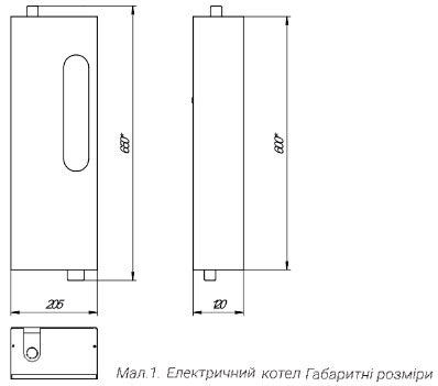 Особливості конструкції та габаритні розміри електрокотла серії Feniks F100 4,5 кВт: