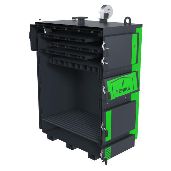- Ефективний Теплообмін: Твердопаливні котли Feniks серії K оснащені ефективними теплообмінниками, які забезпечують ефективний обмін тепла між горінням палива та водою в системі опалення.