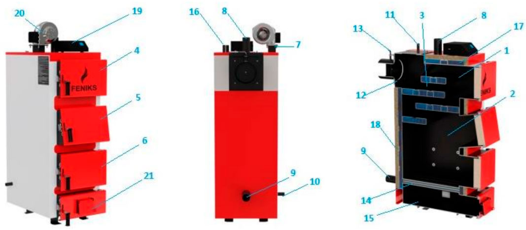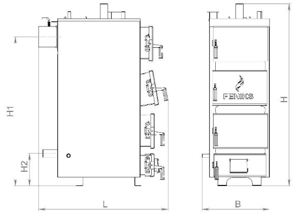 Особливості конструкції та габаритні розміри котла Feniks С 12 кВт:
