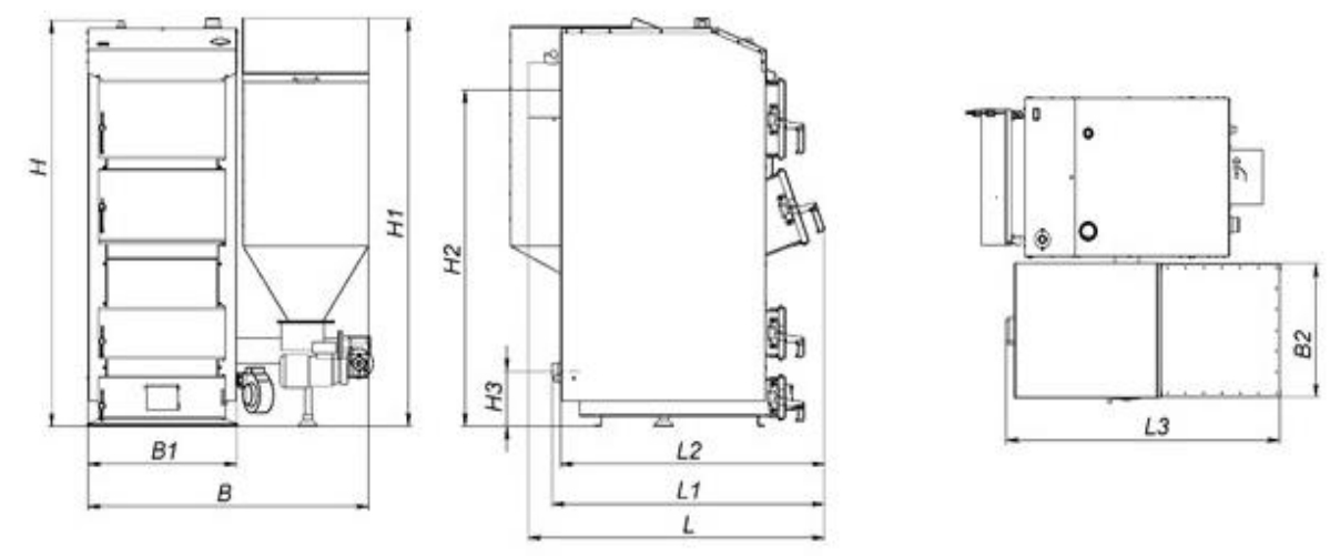 Особливості конструкції та габаритні розміри котла Feniks R 95 кВт: