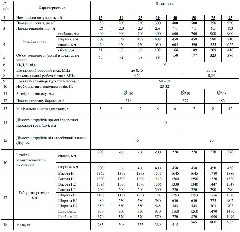 Технічні характеристики котла